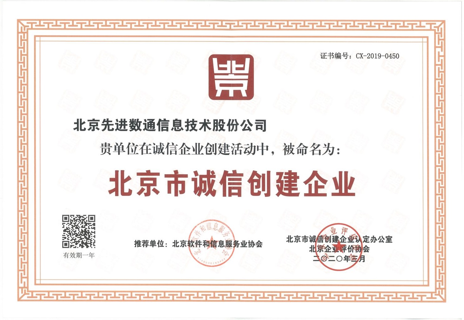 2020-05-20克日,,,,,在北京市诚信企业建设运动中,,,,,先进ggpoker官网再次荣获2019年度“北京市诚信建设企业”声誉称呼,,,,,这已是先进ggpoker官网一连六年获得此项殊荣。。。。。。